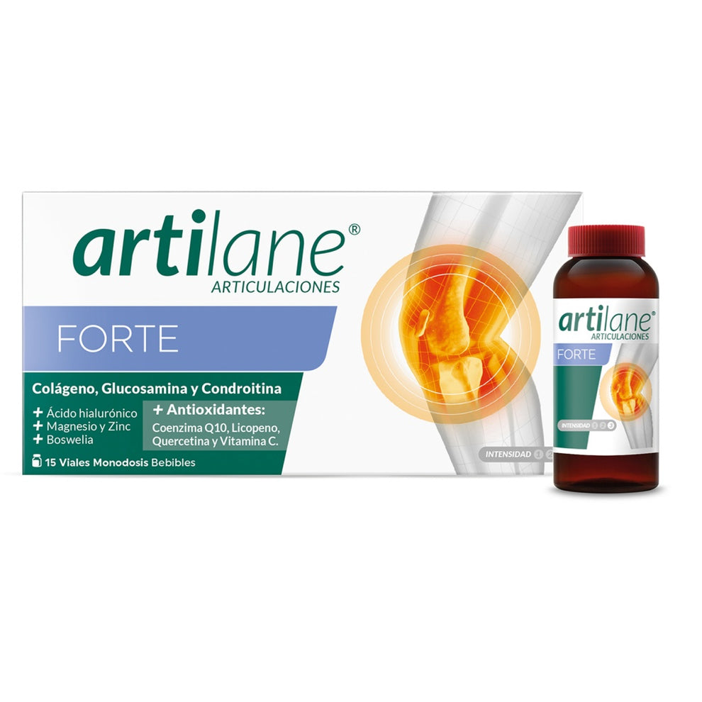 4. Artilane Colágeno Forte 15 viales: El refuerzo intensivo por excelencia de nuestra farmacia. Su formato en viales bebibles aporta altas dosis de colágeno, glucosamina y condroitina, siendo la opción más completa para proteger el cartílago y reducir el dolor en procesos inflamatorios agudos.