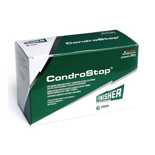 5. Finisher Condrostop (30 sobres): Suplemento articular completo con colágeno, magnesio, cúrcuma y vitamina C. Ayuda a mantener la salud del cartílago en brotes recurrentes, aprovechando el poder antiinflamatorio de la cúrcuma.